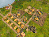 最初に移住してくる新参の市民の欲求(必要な資源)は「小麦」「肉」「祭壇」「井戸」の四つ。そこで「小麦農場」「養豚場」「祭壇」「井戸」を建設する。この四つがある程度満たされると,新参の市民は見習へと自動的にアップグレードされ,住宅の形も変化する。