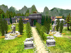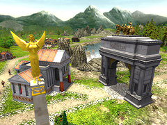 | 凱旋門や黄金の像といった記念碑は,一定の発展度を達成すると建設が許可される。記念碑の近くの住居は,名声が高まって階級が上がりやすいという利点がある |