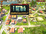 建物の建設位置を指定したら,あとは見ているだけで,それ以外にプレイヤーが関与する要素といったら,寺院に金を寄付するかのオン/オフや,兵士に攻撃を指示するかのオン/オフ(実際の軍事行動もAIが行う)といった程度で,シミュレーションゲームによくありがちなスライダーの調整とか,数値をいじる類の操作は一切ない。火事が起きても,役人が消火してくれるのをじっと待っていればよい。操作量はかなり少なくて済むので,まったりとプレイするにはかなり適したゲームだ。
