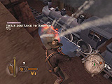 | 膨大なテキストは,やはり英語の苦手な人(例えば筆者)にはつらい。ラッセルの人,頑張ってください | 物語の中盤からは,ネイティブアメリカンと深く関わるColton。弓も彼らからもらったようなもの | 途中で手に入れたサーベルで,街の人を切り刻んでみた。しばらくすると,保安要員に取り囲まれた |