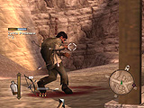 ただ,本作はプレイステーション2やXbox,Xbox 360といった各コンシューマ版も存在するマルチプラットフォーム用の設計のためか,難度Normal程度では一般的なFPSのようにシビアな射撃精度が必要となることはない。体力回復アイテムのウイスキーをガブ飲みしつつ,軽いオートエイミングにサポートされながら敵に照準を合わせてドンパチ撃ち合うという,爽快感重視のプレイスタイルがとられている。