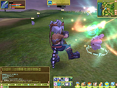 戦闘も極めてオーソドックス。と,いってしまえばそのとおりなのだが,複数のキャラクターを同時に操作するシステムや,アクション要素を取り入れたスピーディな展開のシステムをウリにしたタイトルが見受けられる昨今,本作の戦闘はシンプルすぎて少々物足りない。レベリングに必要な狩りも単調になってしまいがちで,しかも成長スピードは緩慢なため,昨今のサクサクとレベルが上がるタイトルと比較すると,ノンビリした感がぬぐえない。