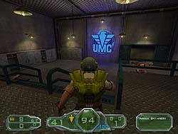 マルチプレイ時のUMC側キャラクター。左上が偵察/狙撃兵向きのSHAUN PATRICK。移動速度は5段階で真ん中,防御力は5段階で下から2番めだ。スナイパーライフルや神経ガス爆弾などを使用できるので,敵とは距離を置いた戦法を取ろう。右上が,シングルプレイ時のキャラクターのJACK FIELDING。速度も防御も真ん中のバランス型キャラクターだ。左中は紅一点のJANE DOA WILSON。最速だが防御力は最低なので,とにかく動き回る必要がある。味方の体力を回復できる特殊な手榴弾を使用可能だ。右中は,速度は2番めに遅いが防御力は2番目に高い,攻撃重視のLEE BROWN。装備できる武器は強力で,白兵戦時のパンチも強力というキャラクターだ。そして右下のシュ○ルツェ○ッガー風の顔をしたメカ歩兵は,RAWHEAD。最も遅いが,最も装甲が厚い。ロケットランチャーとミニガンを装備した,まさに移動できるトーチカという感じだ。