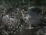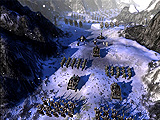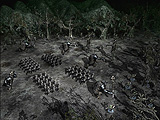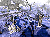 | 妙に暗いマップなのは,闇の森だからなのか? OrcやTrollの攻撃に,エルフのアーチャーたちが防戦している | フォルノストの積雪地帯と思われるシーン。前作よりも使用できるユニット数が増えているのがわかる | 中央で縛られているMountain Trollは,原作のみに登場するクリーチャー。原作の版権を取得した成果といえるだろう |