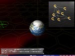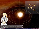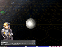 | シナリオ冒頭での説明には,戦闘の背景にあるストーリーのほか,舞台となる星域の状況説明などがある | あるシナリオの舞台となる赤色巨星(中)と恒星(右)。星の周囲に表示されている円は重力圏や接近限界を示す。この円の内部に入ると艦隊の運動に影響が出るほか,最悪の場合艦隊が重力に引き込まれて失われることも | |