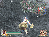 本作には,RPGなどでよくある「武器の買い替え」という概念がない。その代わりに,フィールドのどこかに隠されている武器アイテムを拾って使えるというシステムになっている。各武器には“連続攻撃数”というものが設定されており,読んで字の如く,その数だけ連続した攻撃が繰り出せる。この連続攻撃数が6の武器に,まれに「エボリューション攻撃」の能力が付加されている場合がある。エボリューション攻撃とは,6連続攻撃を繰り出したあと,さらに追加される3発の連続攻撃だ。つまり,このエボリューション攻撃の能力を持った武器を装備していれば,計9発の連続攻撃が出せるということになる。ただし,このエボリューション攻撃が使えるのは無双ゲージ(画面左下にあるゲージ)が最大値のときのみ。そのため,エボリューション攻撃能力付きの武器を使用している場合は,無双ゲージが減少してしまう無双乱舞の乱用は,避けたほうがいいだろう。