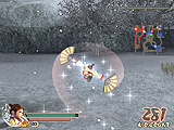 チャージに対応したキーかボタンを押し,武将の力をチャージした状態で攻撃を繰り出せば,通常より強力な攻撃に変化する。このチャージのレベルが5のときの攻撃が,従来の攻撃から吹き飛ばし攻撃へと変更された。吹き飛ばされた敵は,無防備状態で宙に浮くため,浮いた敵を追いかけてさらに攻撃を加えれば,対戦格闘ゲームでいうところの“空中コンボ”へとつなげられる。これにより,チャージ攻撃がさらに使い勝手のいいものへとなっている。敵の攻撃の間隙を縫ってまめにチャージを行い,積極的に狙っていこう。