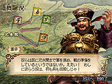 | オープニングやエンディングで見られるムービーは,美しいのひと言。趙雲も例の如く超美男子に描かれている | ゲーム中には三国志でおなじみの名武将が多数登場。ちなみにこれはホウ統。グレート・ムタばりの怪しさ | ゲームをプレイしている途中,物語上重要な場面に差しかかると,このようなポリゴンデモが挿入される |