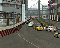| マカオは,走っていて猛烈に面白い! 長いストレート区間を抜けて,カジノで有名なリスボアホテル前の名物コーナー「リスボアベント」へ団子状態で入っていく。ここから「山側」セクションへと入っていく |