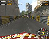 | マカオ市街地コースは,コース幅が狭いところで7m。先の見えないタイトコーナーを,いかにリズミカルに走り抜けられるかがポイント | 路面のアップダウンや凹凸,うねりなども再現されており,リプレイで眺めていると本物のレース中継と見間違うほど | 本物のドライバーでさえ,ライン取りを間違えると曲がりきれないメルコヘアピン。ここも,マカオでは有名コーナーの一つだ |