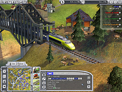 | Railroads!には,画面にあるような高速列車TGVを頂点に,総計46種類の機関車が登場する。プレイヤーが運転手の視点で列車を動かすことはできないが,カメラを特定の列車に固定して,ただ眺めているだけでもかなり楽しい。水面に揺れる鉄橋の影や,運転手や駅の乗客までが描かれているほどグラフィックスは細かく,車両の色やロゴなどの変更も可能だ |