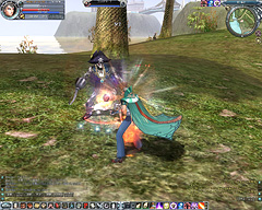また韓国産の3D MMORPGの中には,グラフィックスはそこそこでも,キャラクターのモーションがギクシャクしている(というか不自然な)作品が少なくない。しかし本作の場合は,歩く,走る,攻撃する,呪文を詠唱する,挨拶する,踊るといったアクションが,しっかりとしたモーションで,比較的かっこよく(かわいらしく)作り込まれているので,キャラクターを操作していて「手触り」がいいし,白兵戦闘からも打撃感が感じられる。