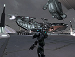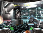| ロード時間は最近のFPSにしては短い部類に入るだろう。ロード画面で現在の状況の確認ができる | 虫のように飛び回り,電磁波で視界を遮る面倒な敵。映画では伝わらない苦労も多々あるらしい | 具体的な任務の指示は,このようにホログラムで投影される。しかし足場は木の板なのか……? |