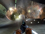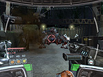 | ディスペンサーからはドロイドが続々と湧いてくる。発見したら早めに爆破しないと始末におえない | スパイダー・ドロイド。非常に強力な兵器で,装甲も厚いため破壊が困難。一人では戦いたくない相手だ | 弾薬数には常に気をつけておかないと,窮地にありながら非常用武器を使う羽目に陥ってしまう…… |