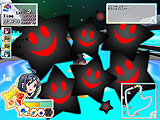 | アイテムによる攻撃の数々。爆弾を投げられたり,氷漬けにされたり,カエルに取り囲まれて飛び跳ねさせられたり…… | ||