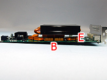 V1 ULTRAはそもそもエアフローがないのでは? と思う人もいるだろうが,構造上,ちょうど(E)地点のメモリの真裏にファンが用意されることになるため,結構冷えていたりするのは興味深い。