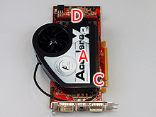 | ZAV-Accelero X1/X2の温度測定ポイント(※写真はRadeon X1900 XTXリファレンスカード&ZAV-Accelero X2)
