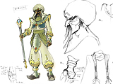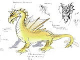 | ・ルワンとゴールドドラゴン 「呪われたオアシス」のボスは,砂漠王ルワンとゴールドドラゴン。左がオリジナル版,中央・右が現在開発中のソーサリアンオンライン版の原画だ。原作の雰囲気を残しつつ,3Dグラフィックス向けに新たにデザインし直されている。動いている画面をはやく見たいものだ |