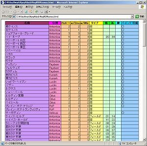 見出し分のクリックでソート可能な表にしてあるのでいろいろいじってみるといいだろう。