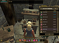 さて,生産はどこでも行えるというのではなく,Forge(炉)やStove&Keg(ストーブ&樽)といったスキルに対応する専用の施設を利用しなければならない。これらの施設がなければ生産活動が行えないので,ハマっているプレイヤーは,何日も冒険に行かずにい続けることも多い。
