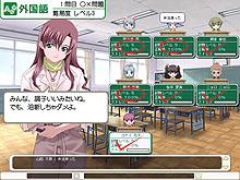 現実の学校生活の中で,最も時間が割かれているものといえば,授業。もちろん本作でも授業は大きな柱として存在する。といっても堅苦しいものではなく,誰でも気軽に楽しめる四択や○×方式のクイズゲーム形式で,授業の雰囲気を再現しているのがミソだ。