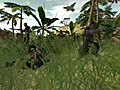 すでに述べたように,Battlefield:Vietnamではジャングルの閉塞感を表現するために,さまざまな植物も細かく描かれている。このあたりの風景はFarCryと似ており,何kmもの遠方までを見渡せるようなオープンエリアや小高い丘があるかと思うと,数メートル先さえも見えないような密林地帯も広がっている。
