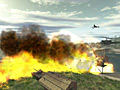 もちろん,一本のチェーンでつるされたタンクは,ヘリが旋回するごとに大きく揺れて,場合によってはクルクル回り出すこともある。タンクに乗っているプレイヤーは周囲に砲撃することも可能だが,命中率が皆無に等しく,逆に3D酔いを起こしてしまうかもしれない。狙ってできる芸当ではないが,バンカーに立てこもる敵の頭上にタンクを落として圧死させるということも可能だろう。