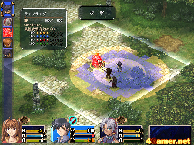移動中,魔獣と呼ばれるモンスターと遭遇すると戦闘シーンになだれ込むのだが,この戦闘内容はかなりタクティカルだ。敵グループと味方パーティの初期陣形,移動と攻撃による位置関係の変化,ユニットごとの行動順など,考慮すべき事柄は数多い。