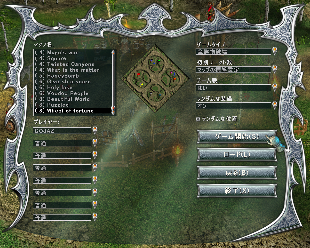 | RTSモードには,対戦相手の数やマップの異なる14本のシナリオがある。難度などは任意に変更可能だ |