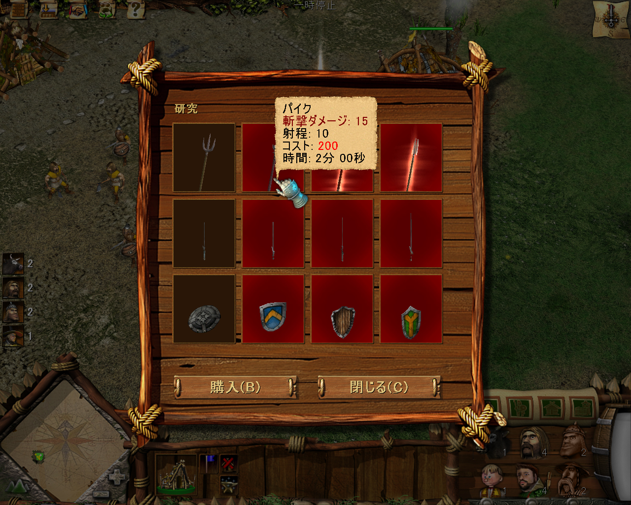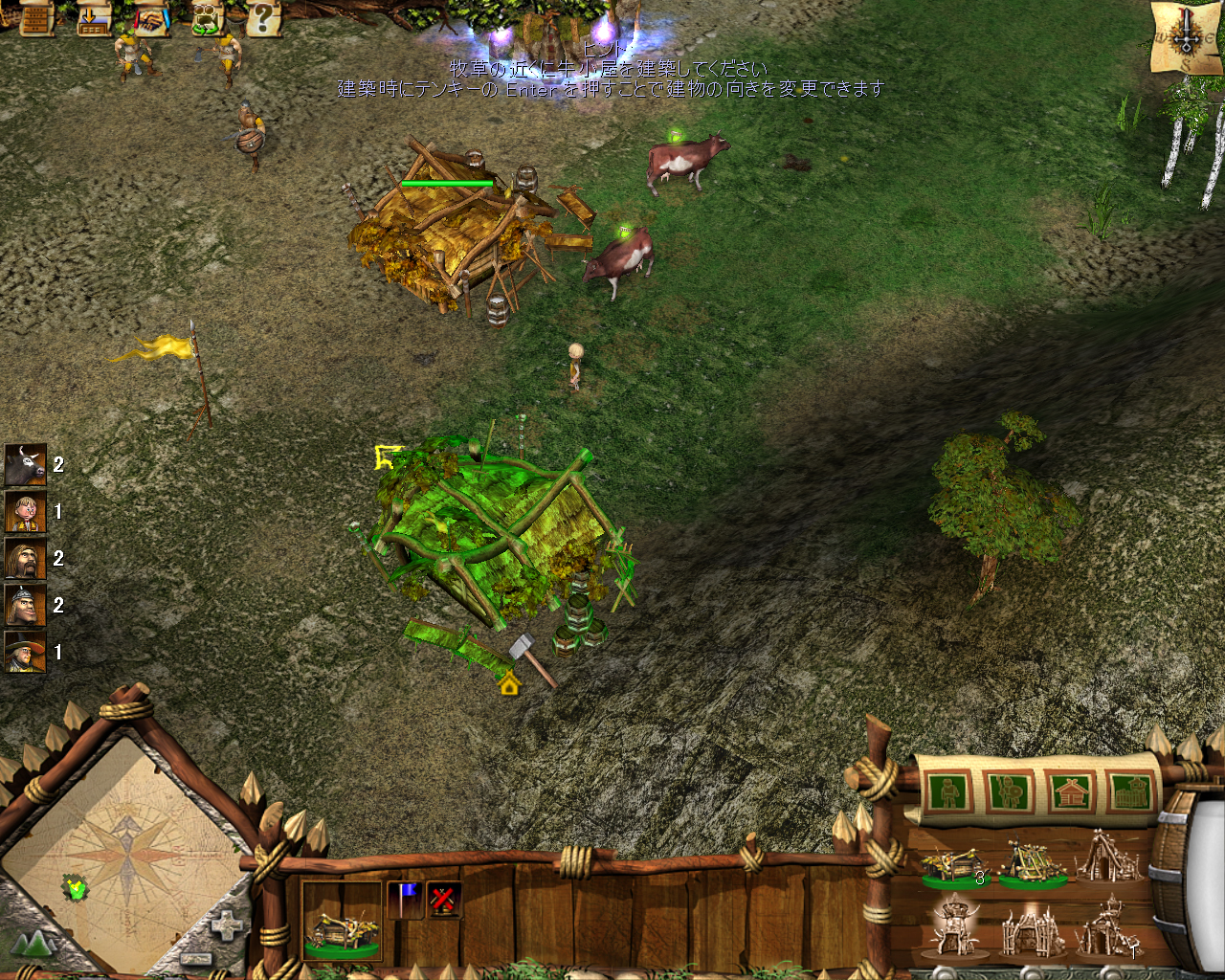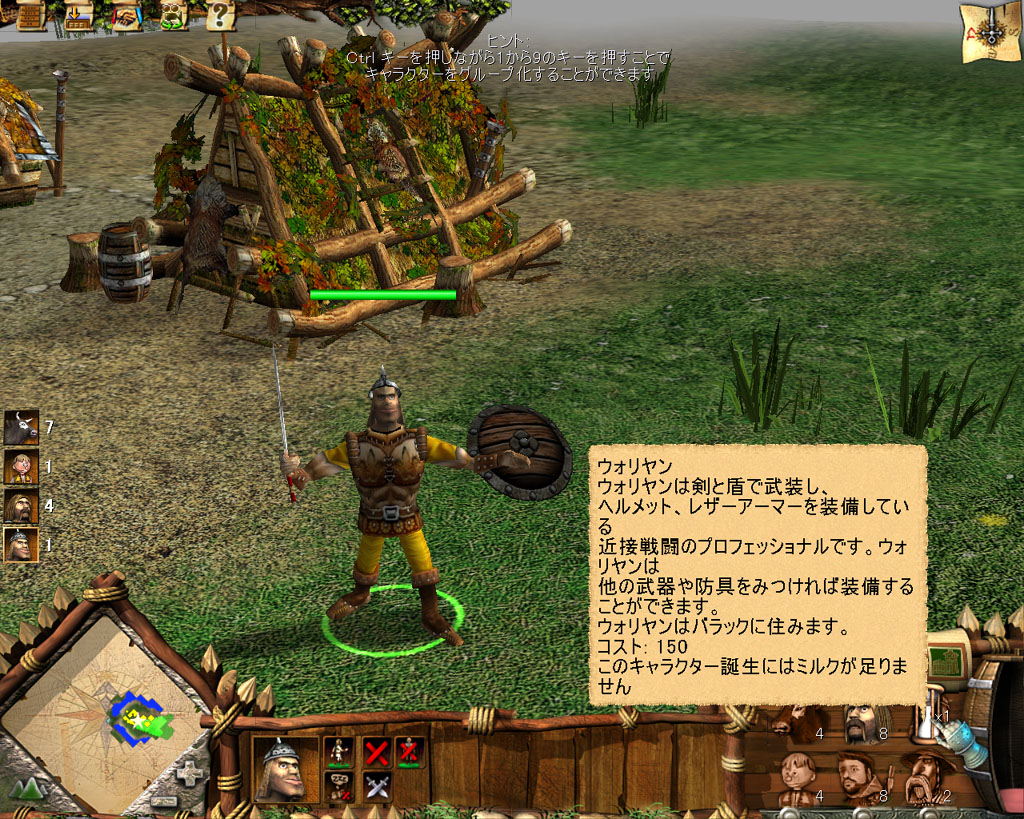 | 写真はキャンペーンモードから。複数のユニットに指示を与えて移動や戦闘を行いながら,同時に村の施設で新たなユニットの生産指示を行うなど,なかなか本格的なRTSゲームとなっている