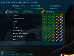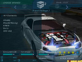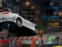 ベースとなる車は国内外の実在する20台。車ごとに,駆動輪による挙動の違いや加速性,最高速,操作性に違いがある。 チューニングパーツを使ってのパワーアップは可能だが,車高やギア比の調整など細かいセッティングはいっさいなく,上記三つの要素に影響が出るだけだ。 カスタマイズパーツはボディを着飾るエアロパーツ,マフラーエンド形状,ボディとエンジンルーム内の塗装の選択,ネオン管,ヘッドライトやテールランプ形状,パーツメーカーのステッカー,バイナル,車をチューニングする足回りやECU(コンピュータ),軽量化,ニトロ搭載などなど多種多様。半端じゃない数のカスタマイズパーツが用意されている。 それらを組み合わせて愛車をカスタマイズしていくのだが,選択したパーツは画面上で即座に装着状態を確認できるのも嬉しい。とくにスポコンスタイルの特徴でもあるバイナルは,サイドに貼る場合,4枚のレイヤーを使って重ねて貼ることや,1枚ごとに色を変えることもできるため,いろいろな組み合わせを試して悩んでいるだけで時間がどんどん過ぎてゆく。 とはいっても,最初からすべてのパーツが使えるほど甘くない。最初は各パーツはロック状態にあり使用できないのだ。 愛車のカスタマイズには,お金が必要なのはもちろんのこと,レースイベントに参加して"スタイルポイント"(Style Points)を溜めていく必要もある。ある程度のスタイルポイントが溜まるとロックが外れて,新しいパーツが使用できるのだ。 スタイルポイントは,敵車の背後に付いたり(ドラフティング),ジャンプしたり,一般車をギリギリで交わしたり,派手にドリフトさせたりなど,いろいろなところで加算され,逆に壁や一般車に激突したりすると減点されていく。簡単にいえば,ギャラリーが沸くような熱い走りをすればいいわけだ。 カスタマイズが進むと,「アイツの車はイカしてる」と"評判"(Reputation)が上がる。評判は5段階で星の数で表されて,その星の数はスタイルポイントのボーナス倍率になっている。つまり星が二つなら2倍,星が三つなら3倍と,より多くのスタイルポイントを稼げるのだ。 レースの勝敗がゲームの流れに影響を与えるのが常だが,レース以前に車の見た目がゲームの流れに影響を及ぼすというドライブゲームがほかにあっただろうか。このあたりはNFS-UGにしかない大きな特徴だといえる。