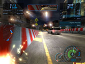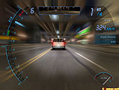 NFS-UGでは,モーション・ブラー表現により200km/hくらいになると遠方の風景がブレ出し,速度が上がるに連れてブレる範囲が広がってくる。さらにニトロを使って爆発的な加速状態になると画面一面が一気にブレて,従来のゲーム以上のスピード感を存分に味わうことができるのだ。 普段運転している人なら経験しているであろう,目の前に車が飛び出してきたときに思わずフルブレーキしながら「ひぃ〜」とのけぞってしまう状況を,ゲームで味わうことになるとは想像できるだろうか……。 ほかにも二つの柱の間を抜けるときなど,モーション・ブラーに加え周りを一瞬暗くするなど,さまざまな試みでスピード感を再現している。 NFS-UGにはマシンダメージがないのも特徴的だ。どんな速度で壁に激突しようが,何もなかったようにレースに復帰できてしまう。 また順位が上位の敵車は遅くなり,下位の敵車は速くなるというキャッチアップ機能があるため,大クラッシュしても諦める必要はない。あまり大きな差でなければ,頑張って走れば追いつく可能性が残されているのだ。 逆に大きな差を付けてトップに立っていても,あっという間に追いつかれて後ろに張り付かれたなんてこともしばしば起こるので,常に真剣に走らなければならない。 つまり,NFS-UGはリアルシミュレータではなく,いわゆるアーケードゲームとして作られているのだ。もしリアルシミュレータとして作っていたら,NFS-UGの面白さは半減……それ以下になっていたと筆者は感じた。なぜなら,NFS-UGの魅力である強烈なスピード感ゆえに大小問わずクラッシュは日常茶飯事。そのつど車が壊れ,その影響で加速しなかったり,曲がらなかったりしたら,上位を狙うのは不可能だ。敵車とのバトルなく最下位をトロトロ走るハメになる。 しかし,ガツンとぶつけても,気合一発で再び追い抜き,「よっしゃ〜」とか思っていたら,次のコーナーで対向車とぶつかって天国から地獄……これはこれで楽しい。アーケードならではの気軽さで抜きつ抜かれつの熱いバトルが楽しめるのがNFS-UGなのだ。