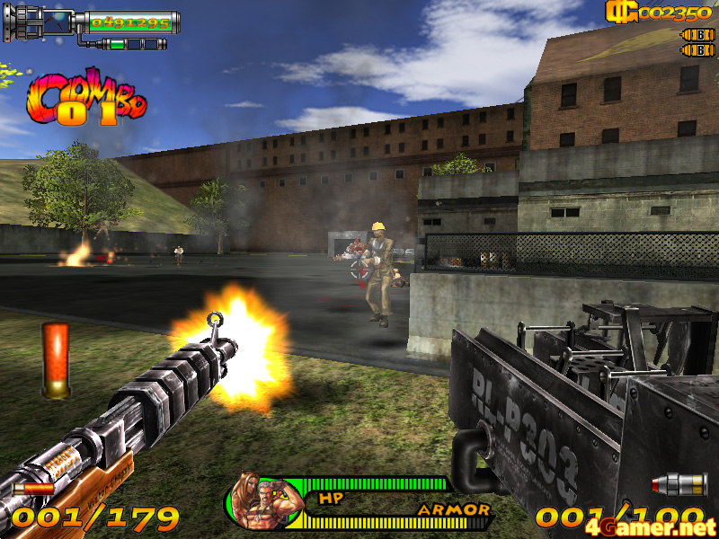ロケットランチャーやショットガンで攻撃すると,敵は高く跳ね上がり,この空中の敵にさらに追い撃ちすることによってコンボが発生する。このゲームでは敵を倒すとクレジットポイントがもらえるのだが,コンボを発生させたほうが,より多くのポイントをもらえるようになっている。