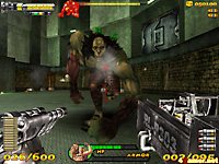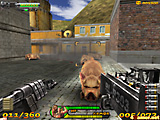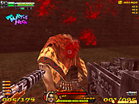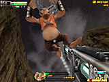 多くのキャラクターを同時に出現させ,制御することが可能なシリアスエンジン。当然のごとく,このゲームでも大量の敵が同時に押し寄せてくる。はるか地平線の彼方から,敵が大挙して自分のほうに向かって突進してくる様子はかなりシュール。しかも敵のデザインはキテレツなものが多いので,思わず笑っちゃったりもするが,近くまで来られると,もう笑っているどころではなくなる。容赦ない攻撃が自分に集中してくるので,FPS慣れしてない人は最初ちょっとパニクってしまうかもしれない。