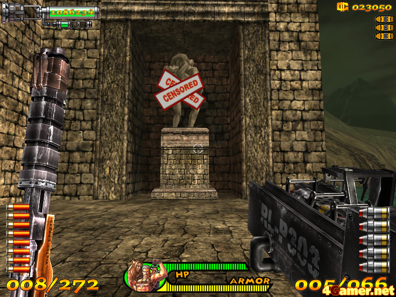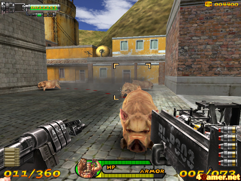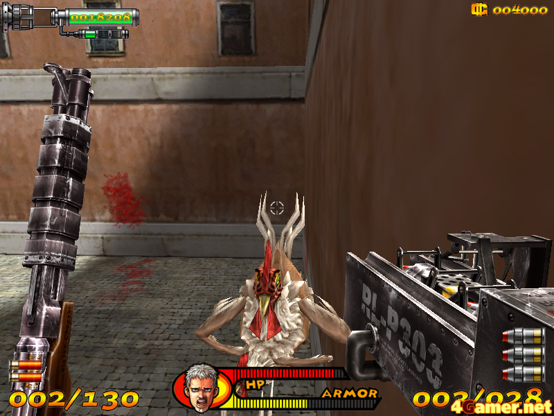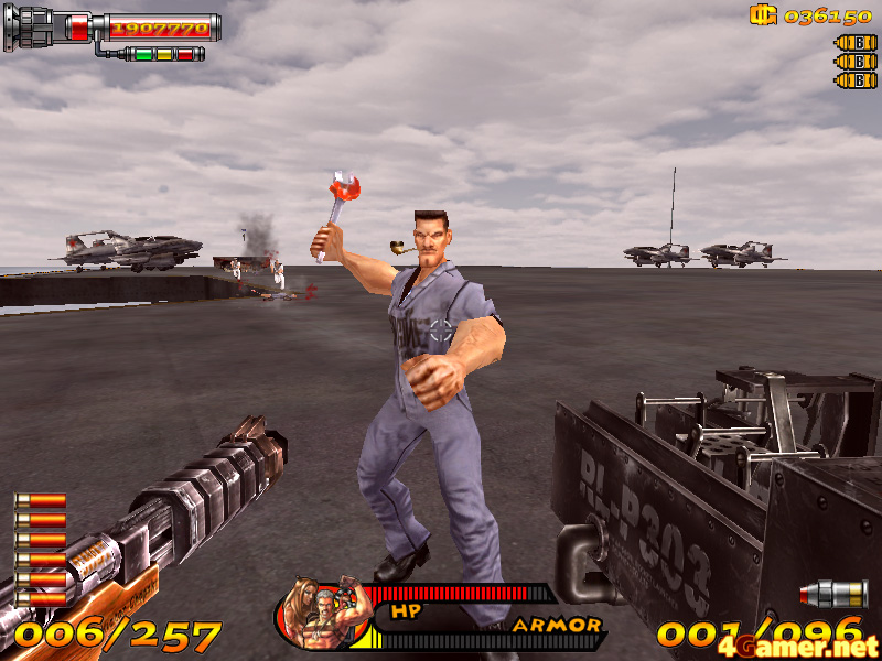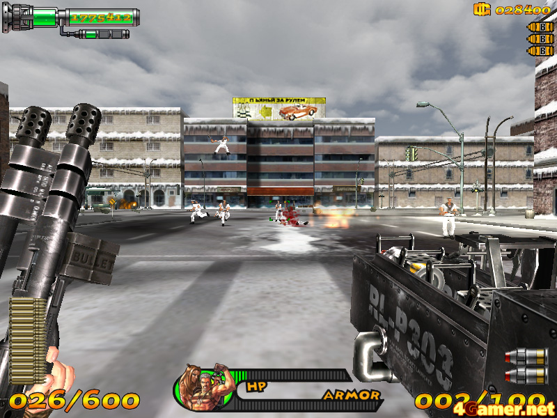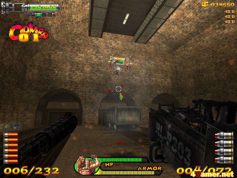 ビクターは最初から所持しているマシンガン,ショットガン,ロケットランチャーという3種類のメイン銃器に関しては,両手に1丁ずつ装備して使用できる。このとき,右手と左手には別の種類の武器を持つことも可能で,例えば右手に持ったロケットランチャーで大量の敵を一気に殲滅しつつ,残った敵を左手に持ったマシンガンで掃射するといった戦術が使えるのが,このゲームの特色だ。
