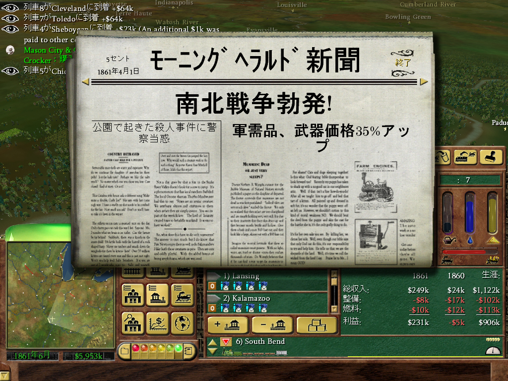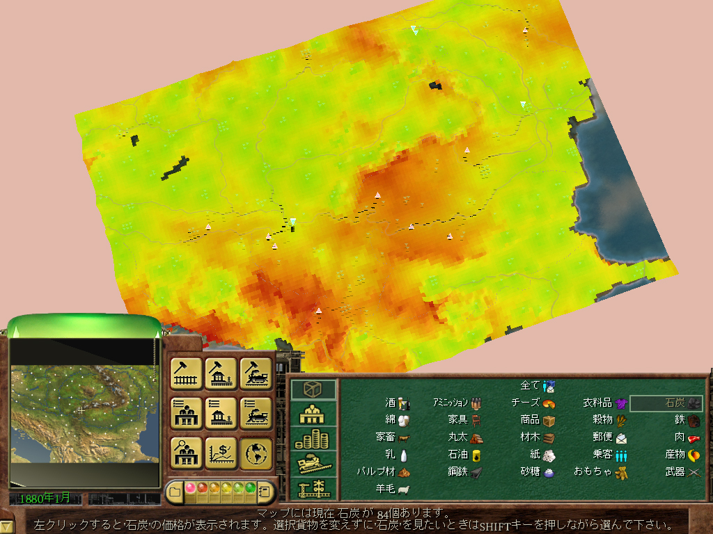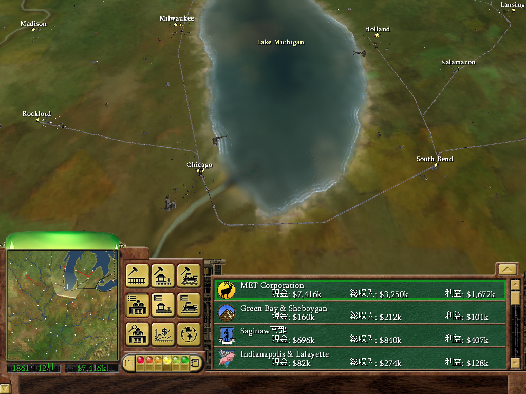 気になる点を挙げるとすれば,物資をプレイヤーの思い通りに扱いづらい,という点。これは自動輸送システムによって物資が勝手に移動してしまうからというのがまず一つ。また,自動輸送のルートは,新しい駅や工場,都市の発展によりリアルタイムで変化していくので,よく観察していないと効果的な輸送は難しい。また,前作にあった貨物を駅で単に降ろすか/売却するかの区別がなくなってしまっているし,利益を生めない貨物は載せることができなくなってしまった。