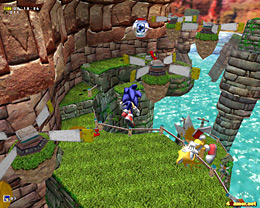 | いかにもソニックらしいステージ構成。ジャンプ台では連続して勝手にジャンプしてしまうので,着地点に注意 |