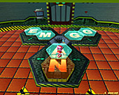 ステージは洞窟,カジノ,空中要塞,遊園地などバリエーションに富んでいて,ジャンプ台やロケットなどを使って移動するような大きな高低差や,パズル的な要素で次のステップへ進むところなどもある。全体的にトリッキーなステージ構成になっているが,難しくて先に進めないということはほとんどなく,難しい場面も何度かトライしていれば先に進めるといった程度の難度なので,テンポ良くプレイできる。