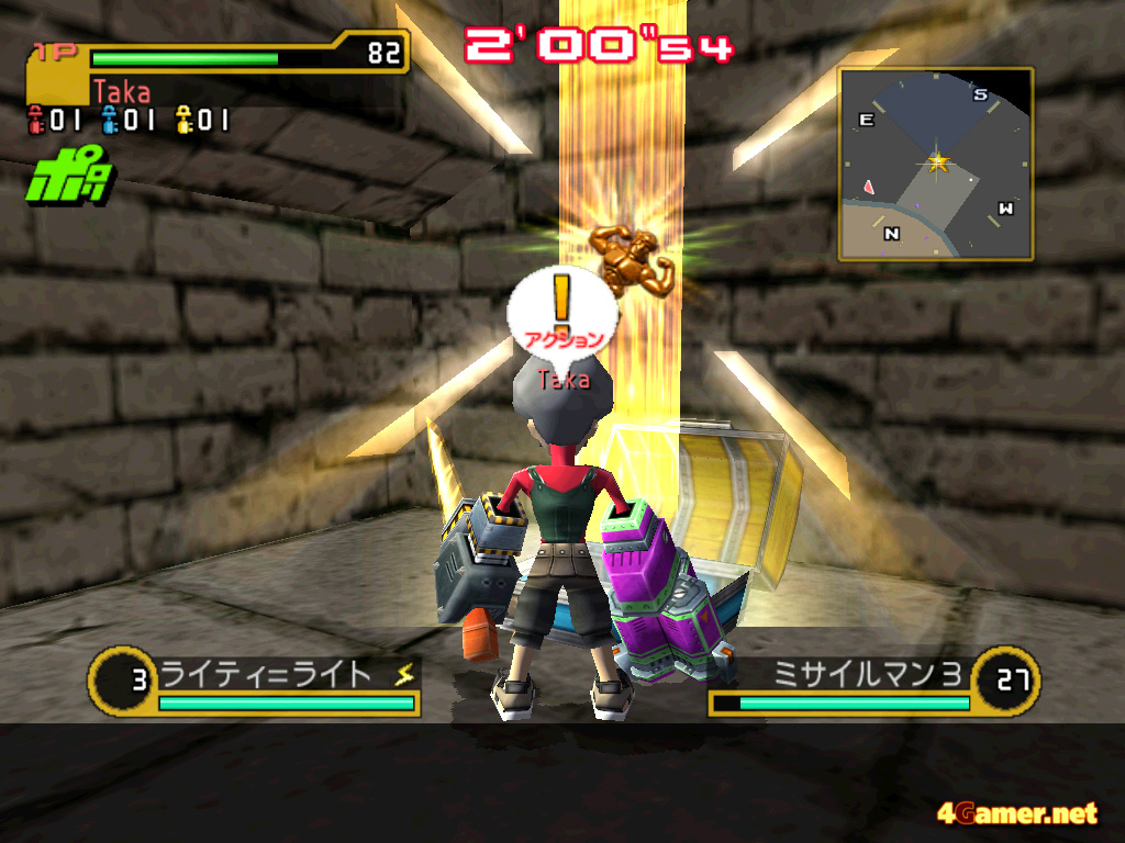 アームズは剣のような接近専用のタイプ,飛び道具タイプ,罠を仕掛けるトラップタイプに分かれ,右手と左手に装備できる。飛び道具にしても,ただ砲弾を撃ち出すものから,ホーミングするミサイルや一直線に飛ぶビーム,ヒットすると敵が踊り出す音符弾など,かなりのバリエーションにのぼる。