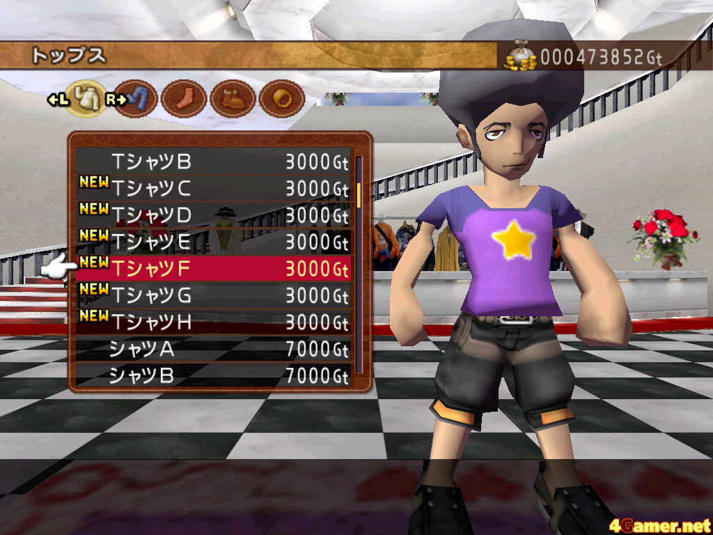 お店には服屋もあり,シャツ,パンツ,靴下に靴といろんなものが買える。キャラの性能は変わらないが,外見が大きく変化 |
