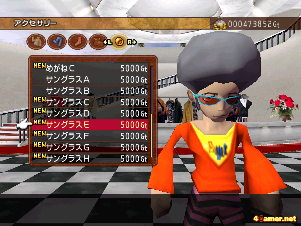 メガネやサングラスといったアクセサリー類で自分らしさを演出。ゲームには直接関係ないけど,凝る人には嬉しい要素だ |