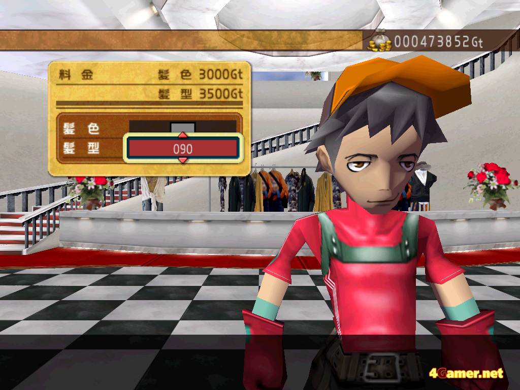 | 町のヘアーサロンで髪型を変えると,最初のキャラ作成時には選べなかった髪型や帽子が選べる。カスタマイズ魂が燃える |