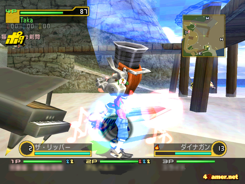 敵に踊らされたあげく,トラップを踏んづけて頭上からピアノが落ちてきた。手持ちアームズのバリエーションで戦略も増える |