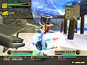 あとゲームのシステム面でいえば,カメラワークやロックオンが使いづらい気もする。ジャンプしながらだとカメラが下を向かないせいか遠距離の敵がロックオンされてしまうため,近距離の敵がうまく攻撃できなかったりする。このため,ジャンプが攻撃にあまり生かせず,移動と回避がメインになってしまう。パッドで遊ぶ場合,LとRでせっかく二つのロックオンボタンがあるのだから,このへんの切り替えがスムーズになればもっと快適に遊べるようになるのに,とか思ったり。まぁこのへんはドリームキャスト版で慣れた人だと逆に遊びづらくなっちゃうので,個人の好みでもあるのだが。