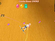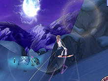 スノーボードに乗りひたすら猛スピードで坂を下っていくわけだが,基本ルールは既存のレースゲームとほぼ同じで,障害物をよけながら制限時間内にコースを完走することが目的。操作方法はカーソルキー左右の移動と,上下カーソルキーのアクセルとブレーキのみで,極めてシンプル。途中に設けられたジャンプ台やコースの地形でジャンプしている間,空中で「Altキー」や「Shiftキー」とカーソルキーを押して決める「トリック」(技)が,「テックポイント」として加算されるのがスノボっぽい要素だ。無事完走すると,タイムとテックポイントの総合判定によって,経験値を獲得する。