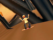 スノーボードが題材である本作の魅力は,なんといっても手軽に味わえるハイスピード感。レースゲームのように平坦な道路を走るのではなく,急勾配をツルツルと滑り降りていく快感が,実にたまらないのだ。雪山のみならず,「ありえない!」というようなコースまでボードで滑ってしまう,無茶な設定もグッド。何を隠そう,本作は筆者イチオシのタイトルである。