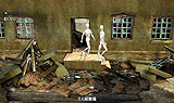 戦争映画用のセットはたったの2種類しかなく,ほかのカテゴリに比べると少々寂しい。ただし砲撃で破壊された廃墟や瓦礫が散乱する「爆破された道路」は,セット自体が巨大なので,路上から建物の中まで,それなりに豊富なシチュエーションに対応できるだろう。「プライベート・ライアン」の後半などでも見かけたような,殺伐としたいい雰囲気だ。