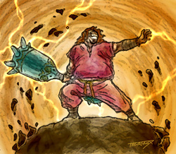 またダーザは,ほかにも数々の魔法の品を持っていた。決して食物が尽きることのないダーザの釜(Cauldron of Dagdha),何度食べても生き返る魔法の猪(銘は不明)などが代表的なところだ。また戦いの後などには,魔法の竪琴ウァードネ(Uainte)を弾いて,人々に笑いをもたらし,場を和やかにしたほか,天候や季節までをも操ったそうだ。