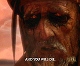 | ムービーシーンは極めてシリアスタッチで,暗くカッコイイ。下段中央の老人は,基本的には味方のはずだが,たたずまいはモンスターのよう。人ではなさそうだ |