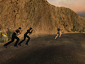 Text by 奥谷海人 禁断のバイオレンスアクションゲーム「Postal 2」(当サイトの特設サイトは「こちら」,E3のプレイムービーは「こちら」)を特別に見せてくれるとのことで,急遽ATI社のブースで開発元のRunning with Scissors社のメンバー達と待ち合わせすることになった。5年前に登場した前作は,しょぼい2Dグラフィックスだったにも関わらず,過激な暴力表現が一部のファンに大当たりし,欧米はもとより日本でもかなりの成功を収めたアクションゲームだ。その第2弾は何と「Unreal Warfare」エンジンを搭載した3Dアクションゲームとして生まれ変わり,しかも4月中旬には発売されるとあって,現バージョンもATI Radeon 9800のデモ機で見事に作動。日本語版の「ファイナルファンタジーX」の横でデモされていたのが,妙に対照的な感じだった。 日常生活の不満を,パラダイスの住人に浴びせかけろ! 「Postal」が発売された1998年といえば,アメリカでは自分の不遇を逆恨みした学生や労働者が,直接関係のないクラスメートや元同僚らを銃で無差別殺人する事件が相次ぎ,国内では事件の防止策が叫ばれていた頃だ。アリゾナ,オレゴン,コロラド,ミシガンなど,普段は平和で犯罪とは無縁だった,ミドルクラスの住む地方の町で銃声が鳴り響き,多くの国民を不安に陥れていた。 "Postal"とは,郵便局とは直接は関係のない隠語で,「ある日突然(手紙を郵便箱に出しにいく様な気軽さで)銃をぶっ放しにいく」という意味を持つ"Go Postal"に由来する。もともとは郵便局職員がストレスによって同僚を射殺する事件の起こった,90年代始め頃に誕生したスラングだとされている。 イメージダウンを恐れた米国郵政公社(USPS)は,Postalの開発元であるRunning with Scissors社を相手取って裁判を起こし,今もなお訴訟中であるという。ほかにもドイツを始めアメリカの大手チェーン店でも発禁にされたり,議会やPTAで非難対象の標的になるなど,その手の話題には事欠かないイワク付きのゲームなのである。 「Postal 2」は前作とは形状が非常に異なり,今や最もスタンダードなスタイルの一つである一人称視点の3Dアクションゲーム(FPS)となっている。Unreal Warfareエンジンを使用しているためキャラクターモデルやテクスチャが美しく,暴力表現が生々しすぎるほどに描写されている。舞台となるのは"パラダイス"という名のアリゾナの架空の町で,一つの大きな町を17区画に分けており,この中で自由な活動ができるようになったのだ。 物語は,朝も暑いアリゾナの夏の週末から始まる。電話に叩き起こされ,狭い室内ではテーブルの角に足の指をぶつけるなど,朝から不快なことが続いている。しかも冷房装置は壊れたままで,朝には欠かせないミルクも冷蔵庫に入っていないなど,ストレスの溜まる日常が続くのだ。主人公はこの町にゲーム開発会社の求人広告を見てやってきた,実は意外とハイテク系の男。だが収入は良くないうえ,動かない妻にキレ切れかかっている状態で,それでもなお自分を抑制しながら,ミルクと妻の好みのアイスクリームを買いに行かされるのである。 不満が溜まりそうなミッションに,プレイヤーはどこまで耐えられるか? Postal 2は実のところ,FPSではなく3Dアクションアドベンチャーであると謳っている。前作では,突然銃を構えた無法者たちが襲いかかってくるという被害妄想を抱えた主人公が,迫り来る敵(というか警察や善良な一般人)に発砲するという設定だったが,Postal 2ではゲームに対して批判が集まらないようにするためか,一度も発砲することなくゲームを終了させることができるという。かなり挑発的な仕様になっているようだ。 このゲームはミッション制になっており,主人公は「ミルクを買って来い」だの「TVタレントのサイン会でサインをもらって来い」だの,頭の線がブチ切れるような妻のお使いに駆り出されることになる。ストーリーは20ミッションからなっており,5日間の出来事として集約されている。ゲーム構成は「Grand Theft Auto III」にも似た自由度の高いもので,与えられた数種類のミッションを1日が終わるまでにこなせば,順序やプレイヤーの行動はとくに制限されていないのである。 ただし,例えばサイン会なら列を作るファンに従って並ばなければいけないなど,開発者にいわせれば「相当にストレスが溜まる」現実世界と同様のルールが待っている。つまり表向きは他愛もない日常生活のシミュレータであり,そんなストレスフルな境地から自分を解放するために"ゴーイング・ポスタル"するのが,このゲームの隠れた(!?)楽しみ方なのだ。それぞれのミッションをどのような手段で対処していくのかは,すべてプレイヤーの判断に委ねられているというわけである。もちろんプレイヤーがポスタルしてもゲーム内でのペナルティはなく,町の別の区画まで行って銃を引っ込めることで,再び安全に行動できるようになる。 プレイヤーの初期装備はハサミになっている。開発チームの"Running with Scissors"という名称からきているのはいうまでもないが,これを相手に向って投
